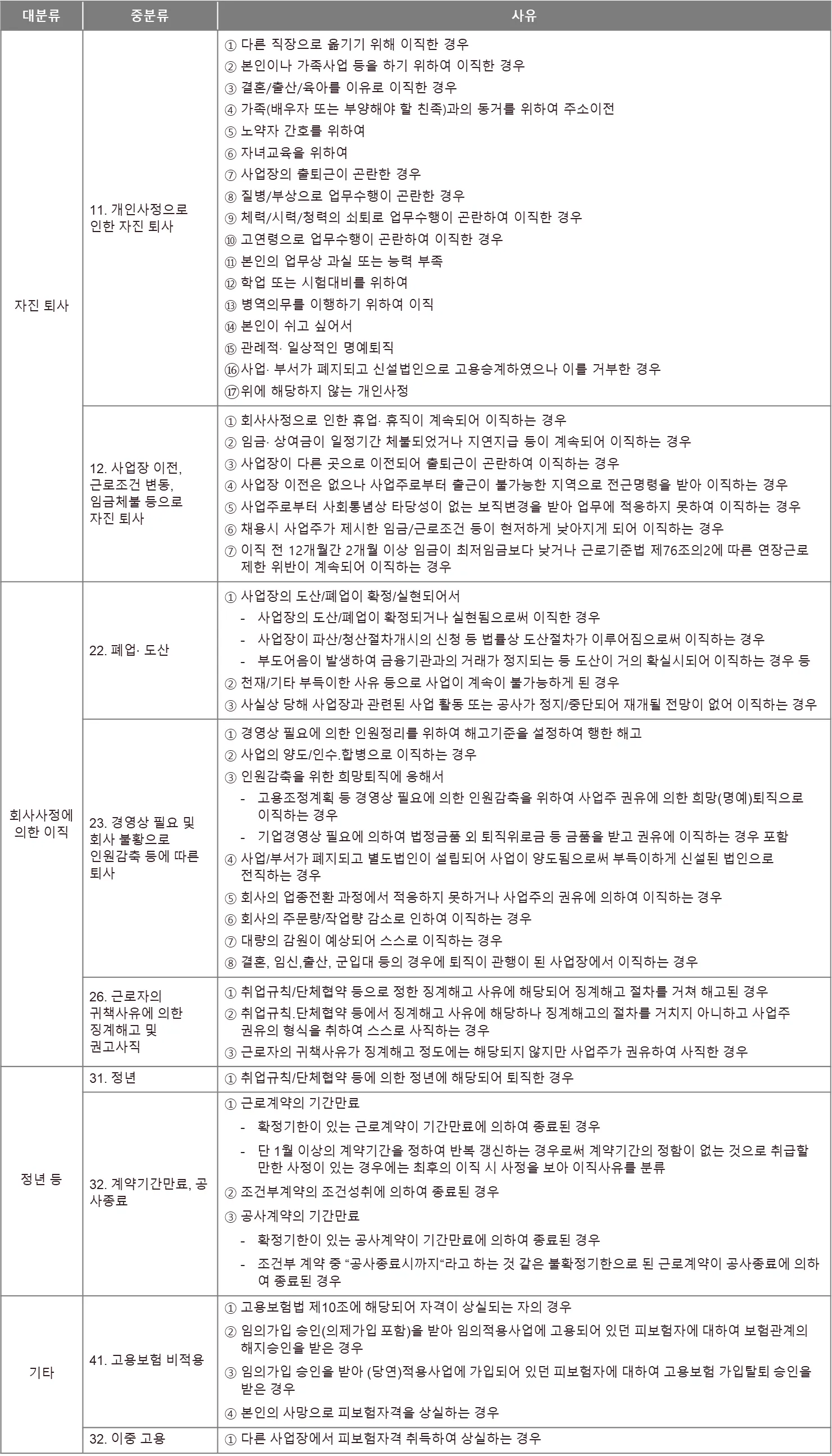 고용보험 상실코드 및 사유 | 실업급여 수급 가능여부 | 기업 지원금 유지 여부 |