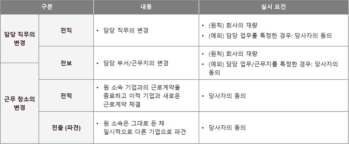인사이동 명령의 유형