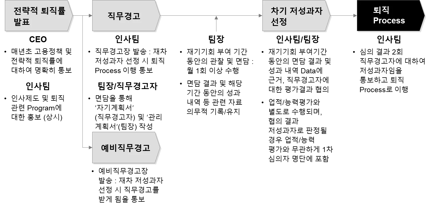 성과부진자 Feedback을 통해 선별된 퇴직대상자