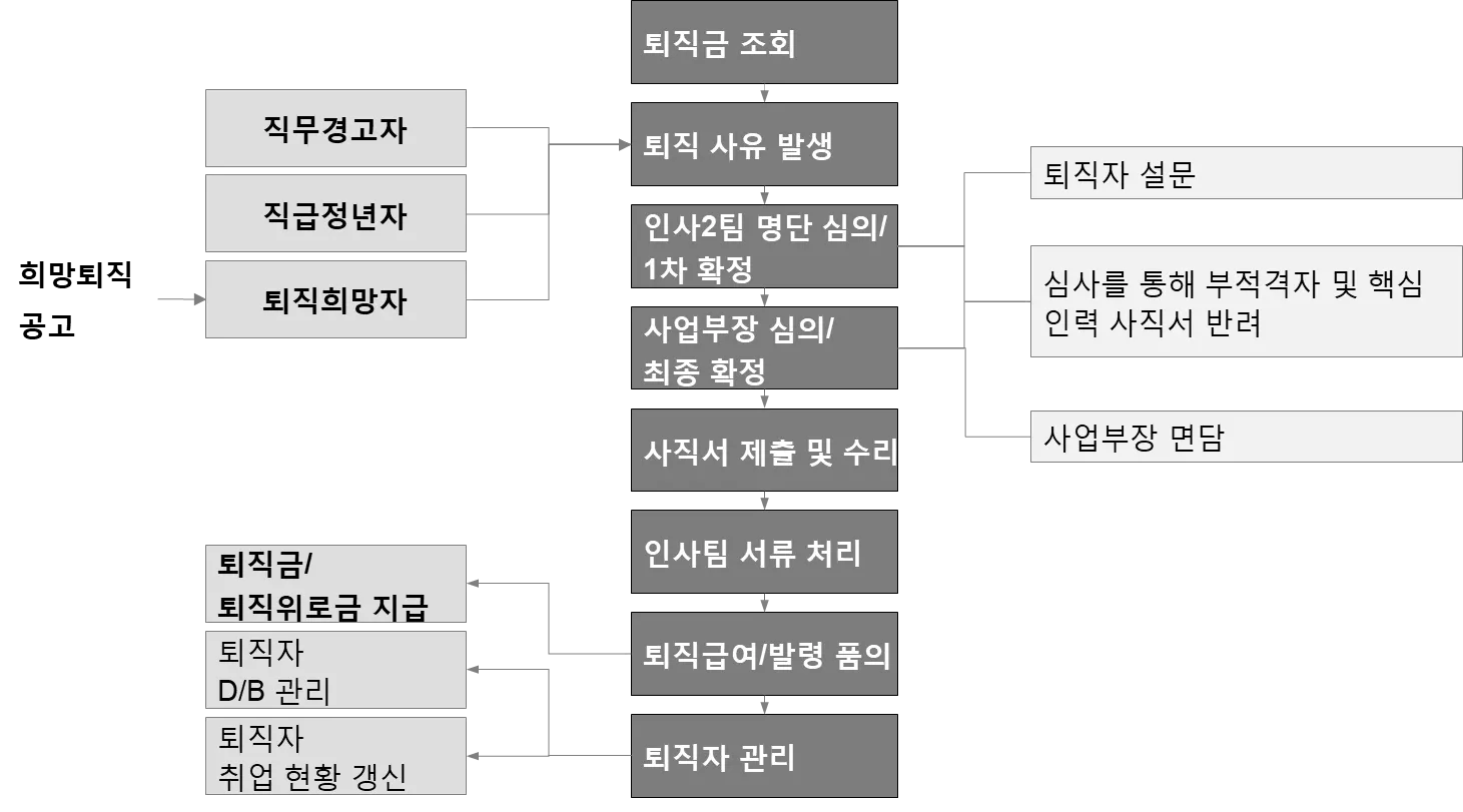 e-HR System을 통해 직원들이 수시로 본인의 희망 퇴직일 기준 퇴직금 금액을 조회할 수 있도록 함