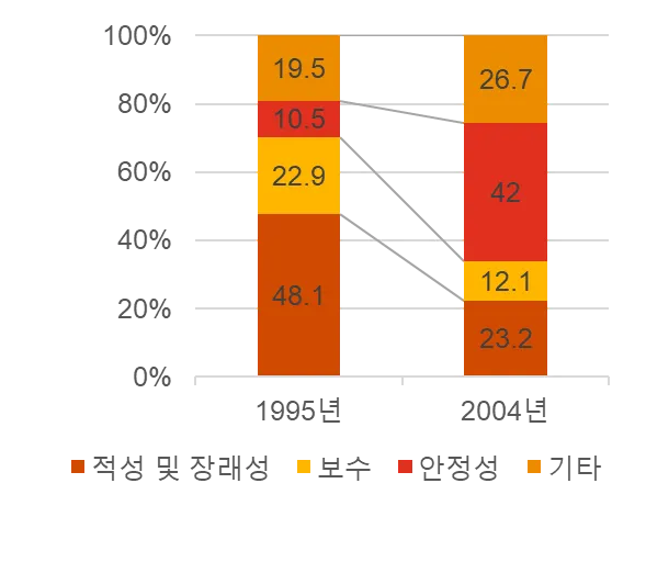 조직의 인력운용방식의 전환과 사회구성원의 가치관 변화가 맞물려 퇴직 성향 증가