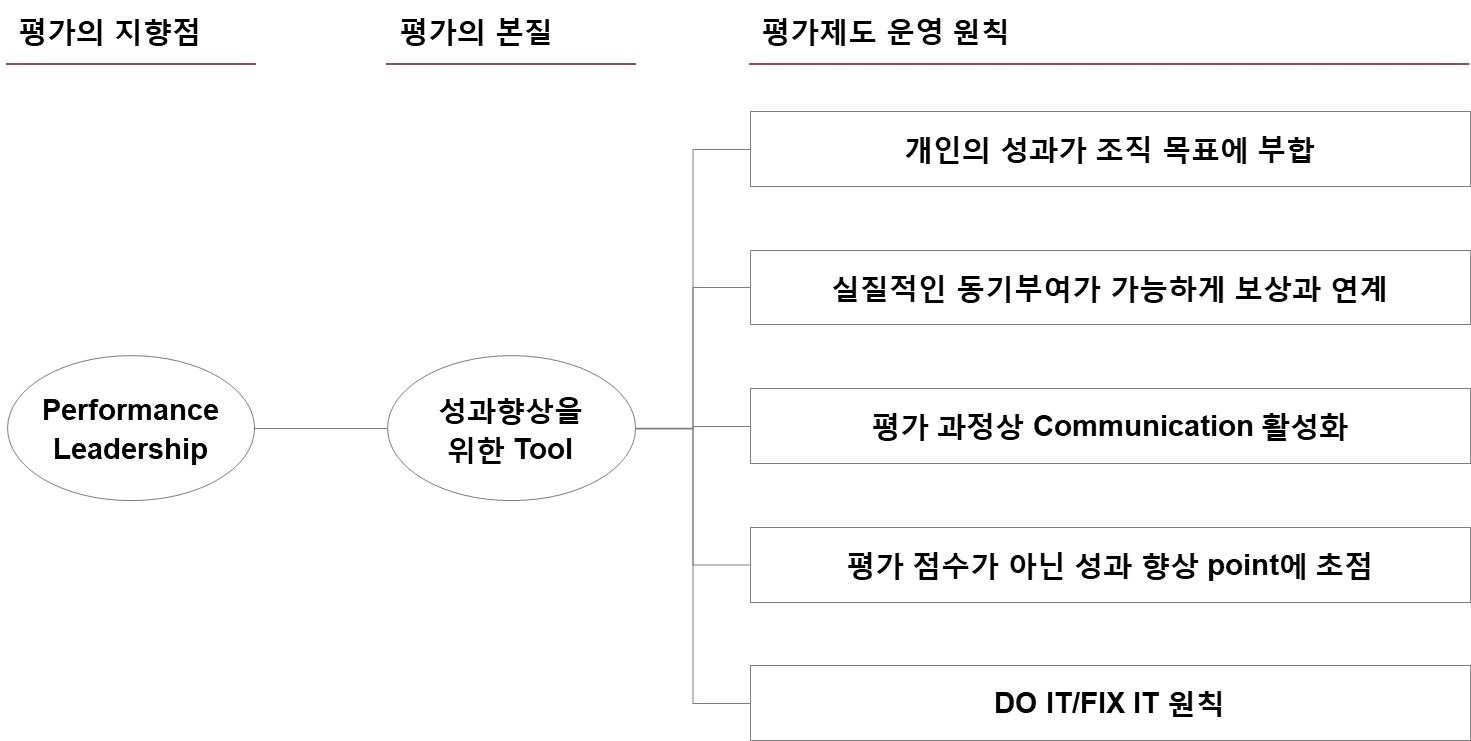 평가는 구성원들의 성과 창출을 위한 tool로써, 성과의 판단 기준으로 활용됩니다.