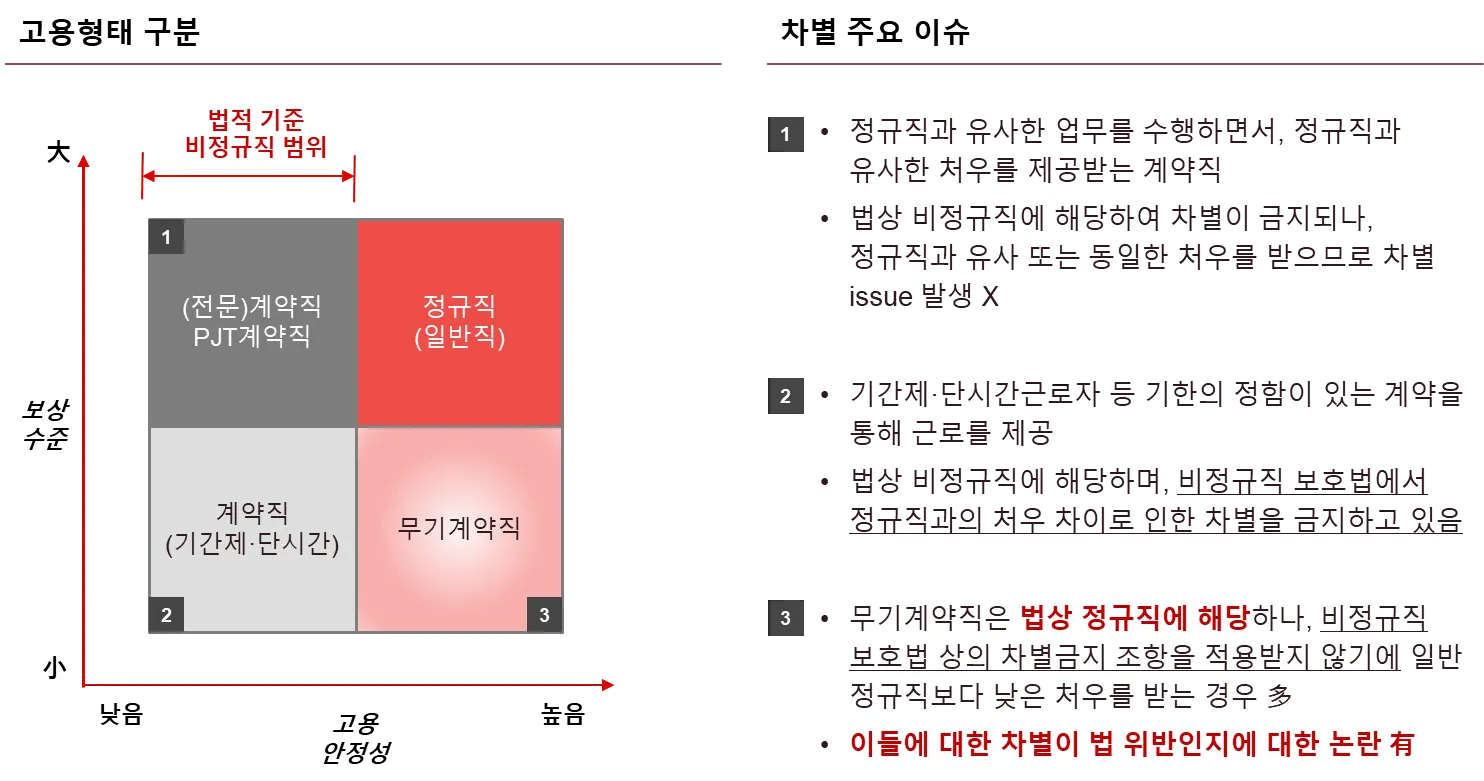 장기근속 유도 및 보상을 목적으로 정규직 근로자에게만 지급한 경우 (자녀학자금, 장기근속수당, 정근수당 등)