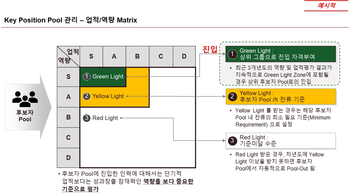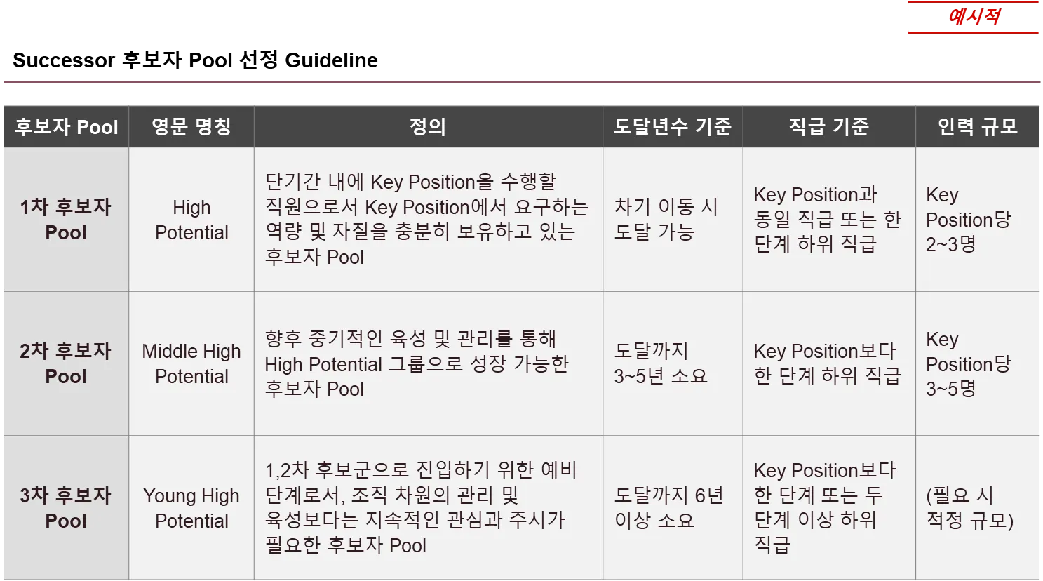Successor 후보자 Pool 선정 가이드라인은 다음과 같습니다.