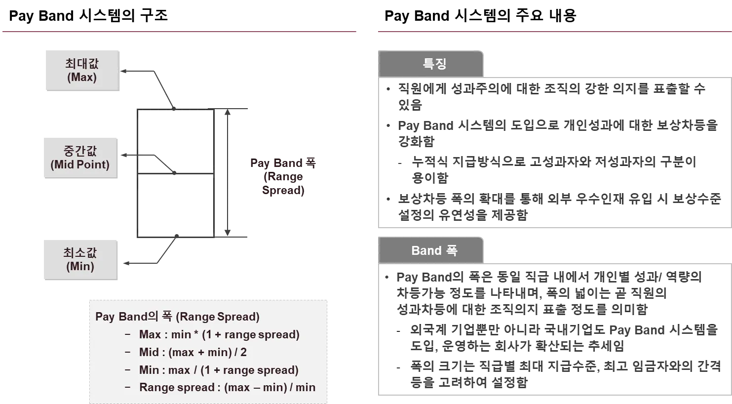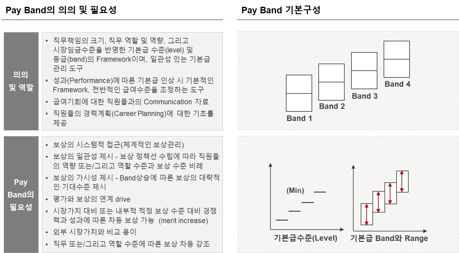 Pay band의 필요성 및 기본구성은 다음과 같습니다.