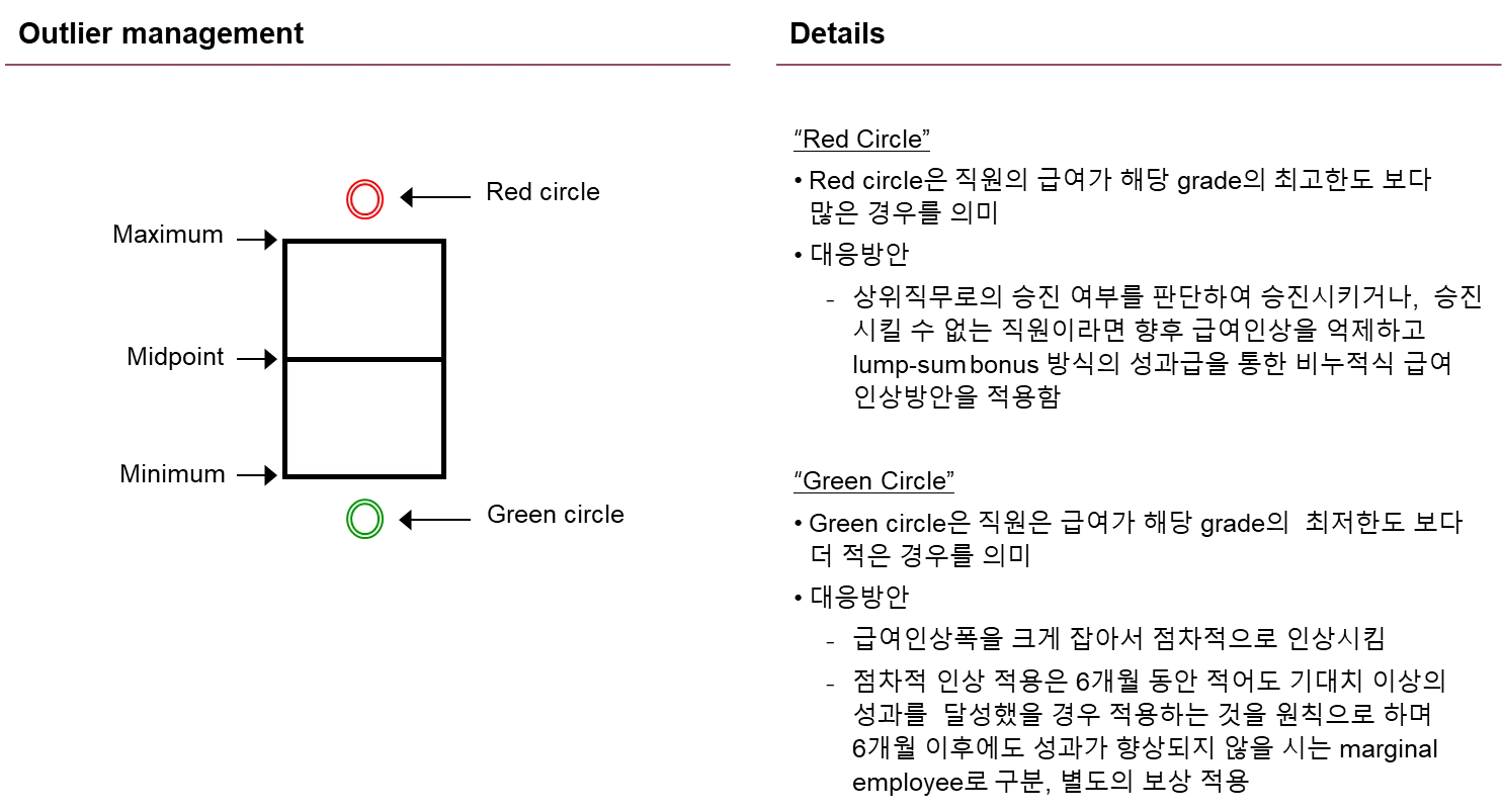 Pay band 밖에 위치한 직원들의 경우 체계적인 band 관리를 위해 별도의 관리가 필요합니다.