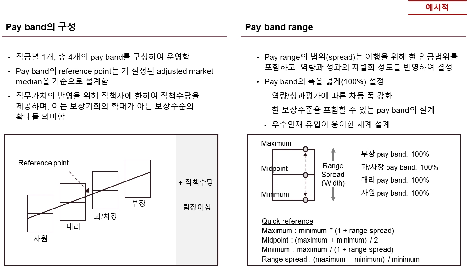 Pay Band 시스템은 개인별로 성과 및 역량에 따라 차등을 가능하게 하며, 향후 필요 시 시장 보상과 개인 연봉수준의 연계를 설정할 수 있습니다.