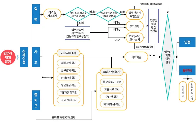 즉, 업무와 재해 사이에 상당한 인과관계가 인정되어야 함