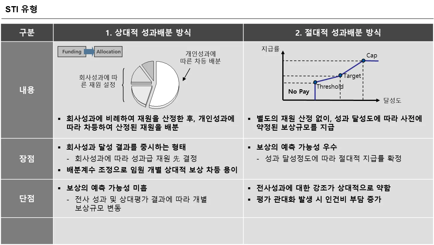 국내 기업은 STI로 상대적 성과배분과 절대적 성과배분의 2가지 방식을 주로 활용