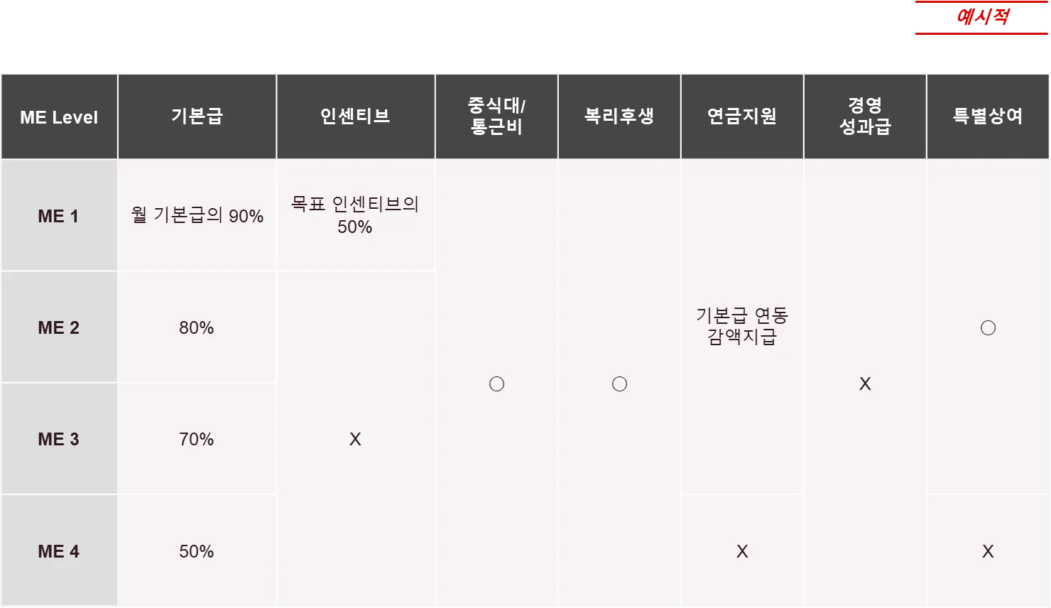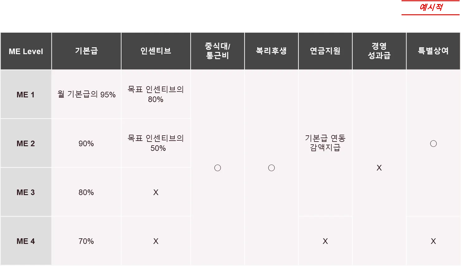 Level 2 이하의 ME 단계에 따라 기본급 및 인센티브의 적용 수준을 차등합니다.