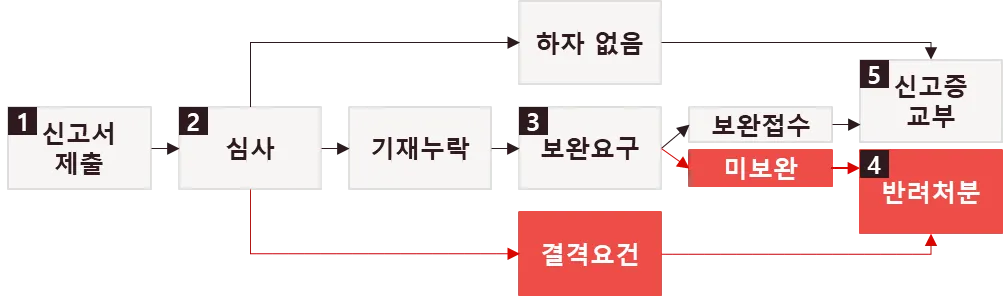 하자 없는 경우 → 3일 이내에 신고증 교부