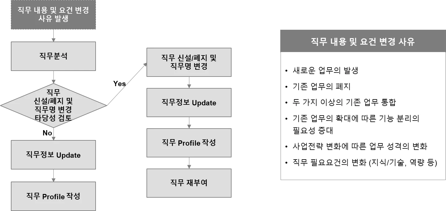 향후 대내외 환경 변화에 따른 변경 내용을 지속적으로 업데이트하여 안정적인 직무관리 및 인사운영을 도모합니다.