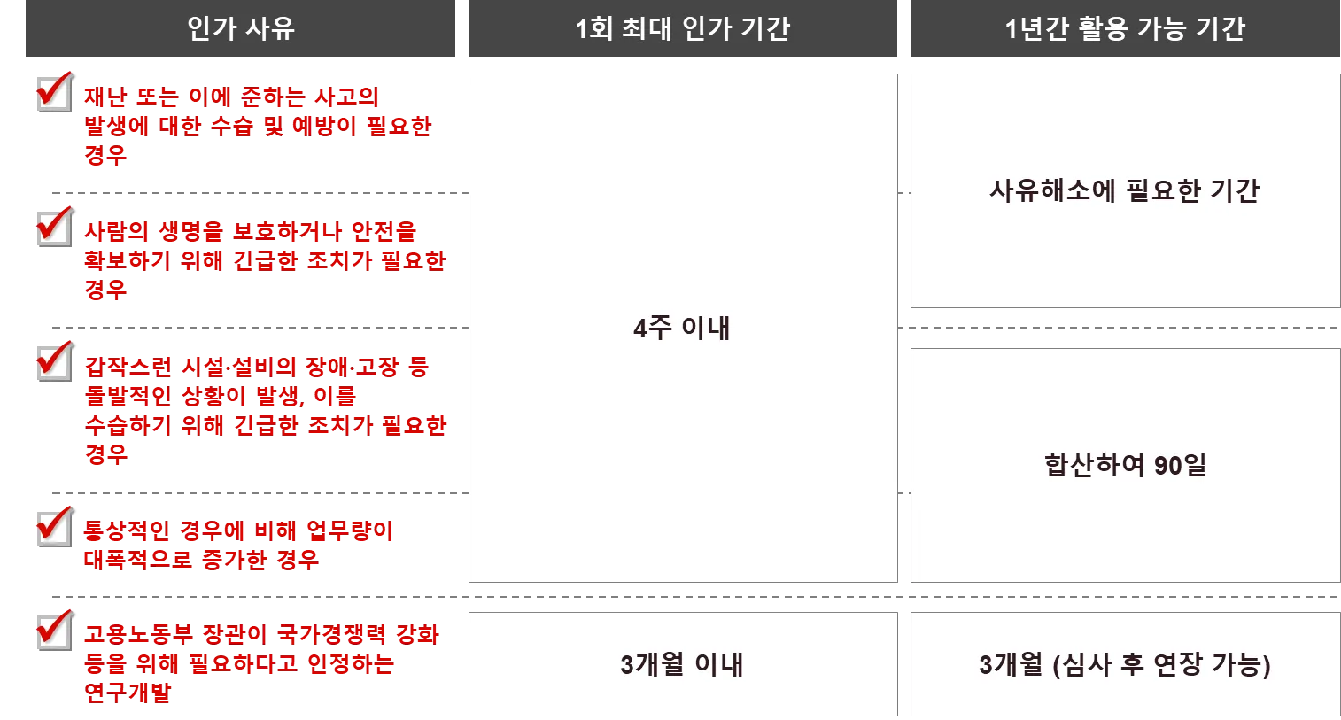 4. 통상적이지 않은 업무량 폭증 + 단기간 내 처리하지 않으면 사업에 중대한 지장ㆍ손해가 발생하는 경우