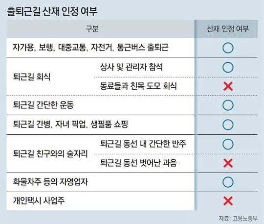 _즉 이동수단에 상관없이 정상적인 출퇴근 경로에서 일어난 사고는 모두 출퇴근 재해로 볼 수 있음 |