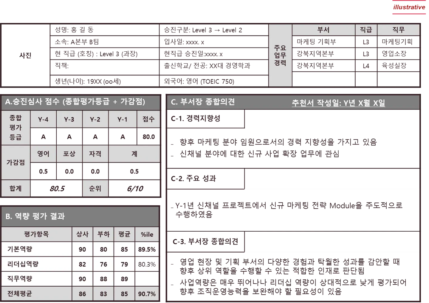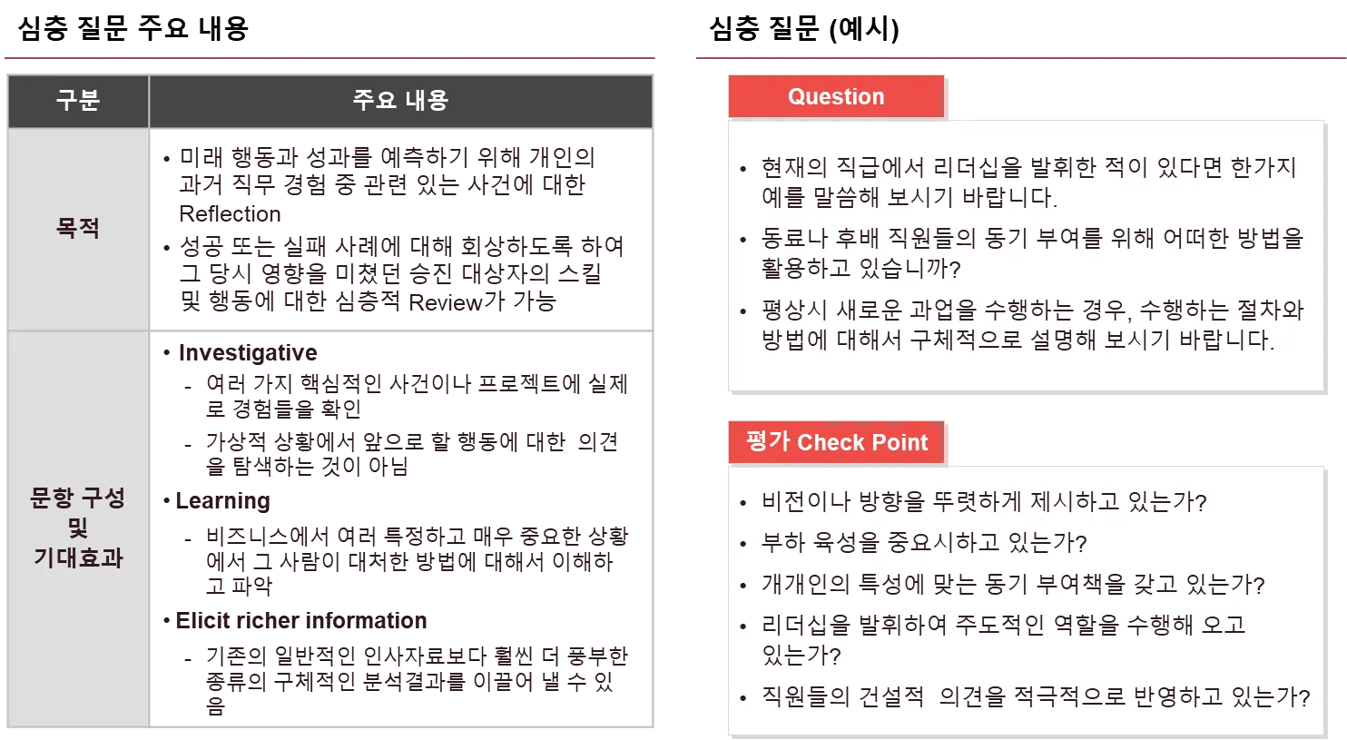 Level 1 Manager 및 Level 2 승진 대상자 중 1차 Pooling을 통과한 후보자를 대상으로 Structured Questionnaire를 통해 후보자의 역량과 자질을 심층적으로 검토 합니다.