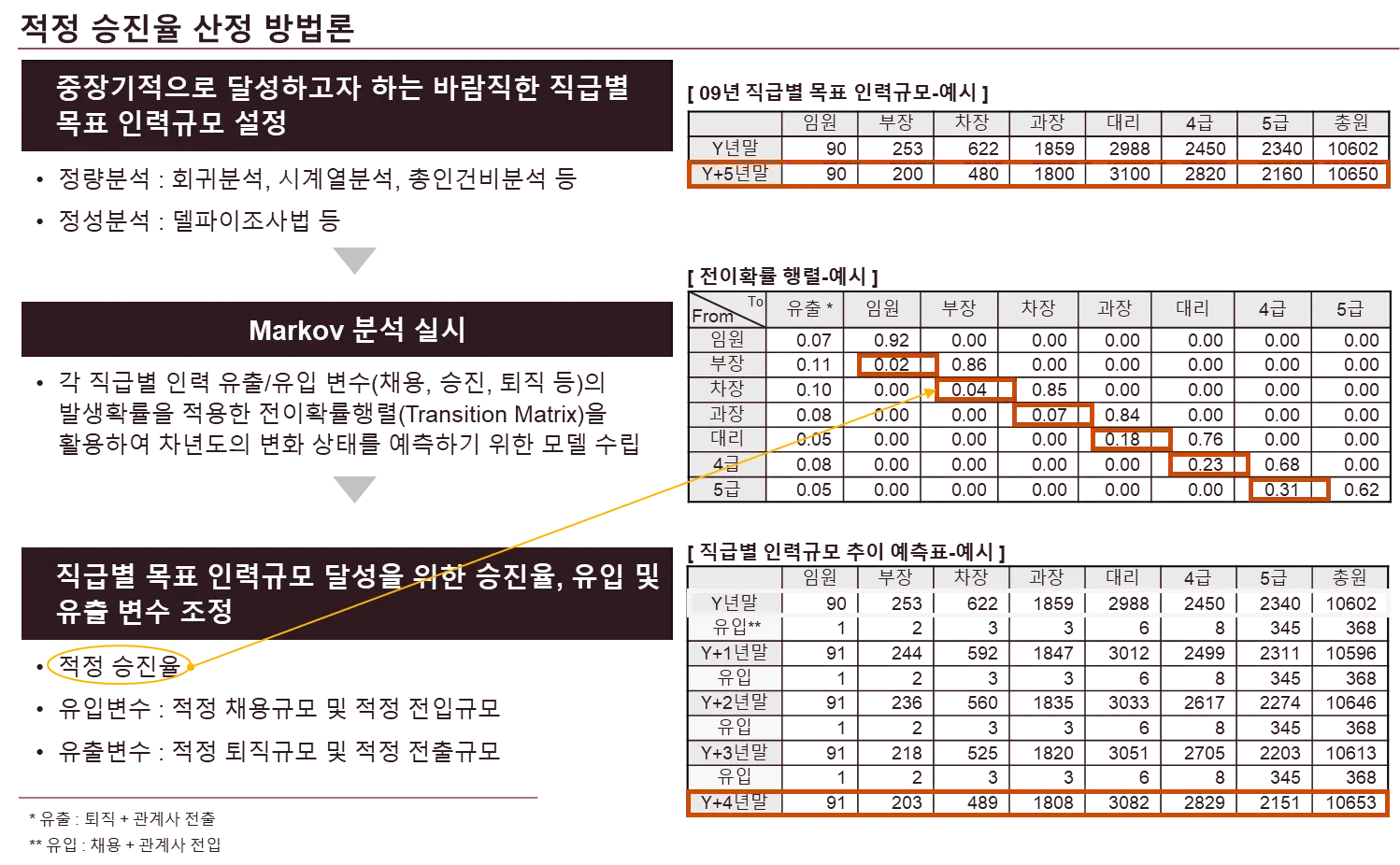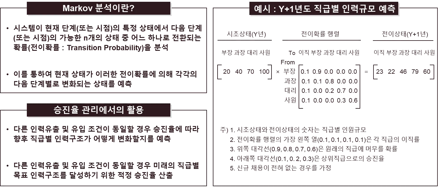 적절한 인력 수준 추정을 위해 가장 일반적으로 활용되는 것이 Markov Chain Analysis 입니다.