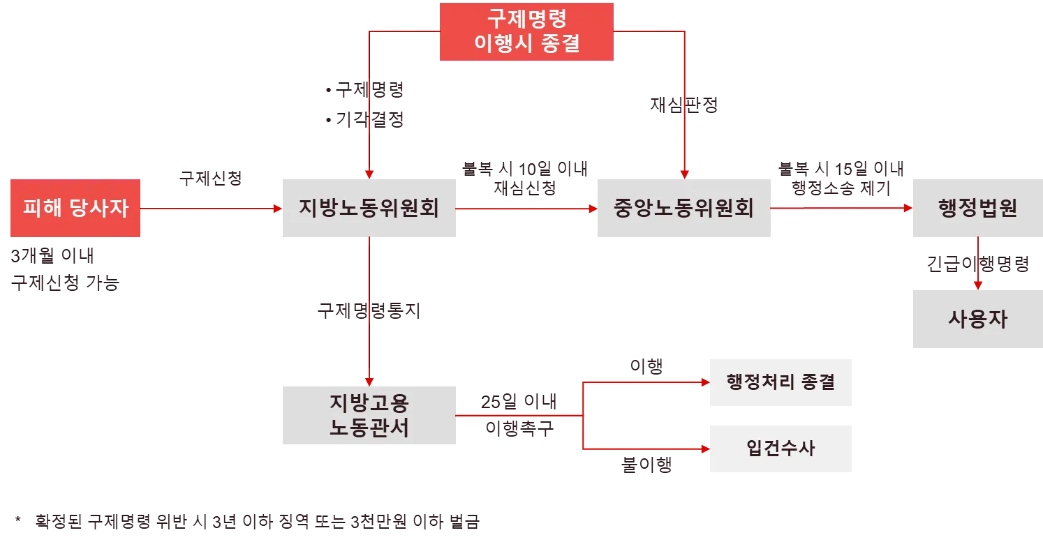 사용자가 노동위원회의 구제명령을 거부하거나 형사처벌을 받고서도 근로자의 권리회복 조치를 취하지 아니하는 때에는 피해당사자는 사용자의 불법행위로 인한 손해배상을 관할법원에 청구하여 이행판결을 받을 수도 있음