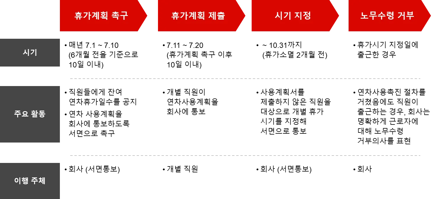 연차휴가 촉진제도 시행 절차 (매년 1.1 회계연도 시작을 가정)