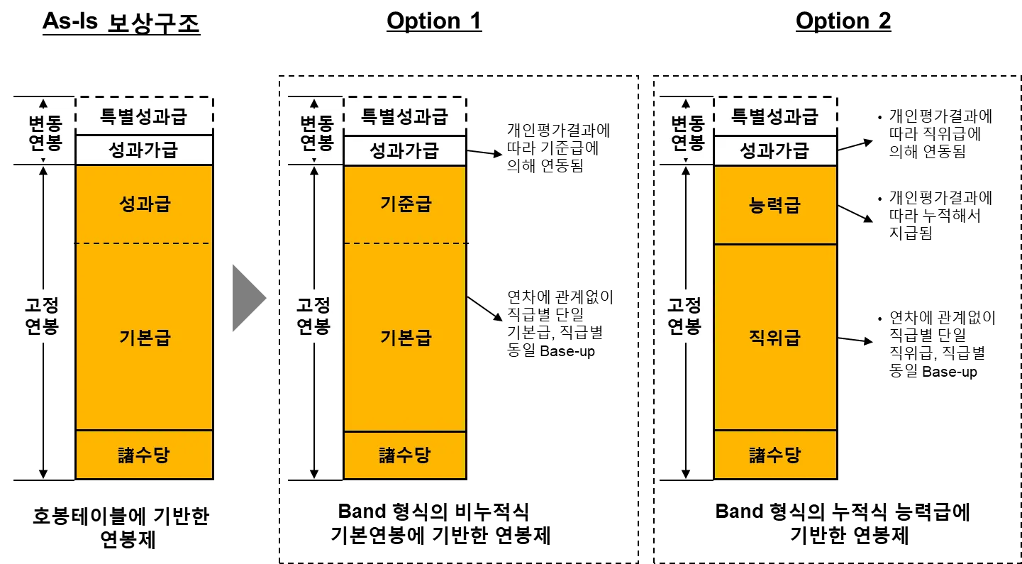 _ 성과가급을 비누적식으로 운영해 매년 성과에 따라 연봉금액이 달라질 수 있는 방식 |