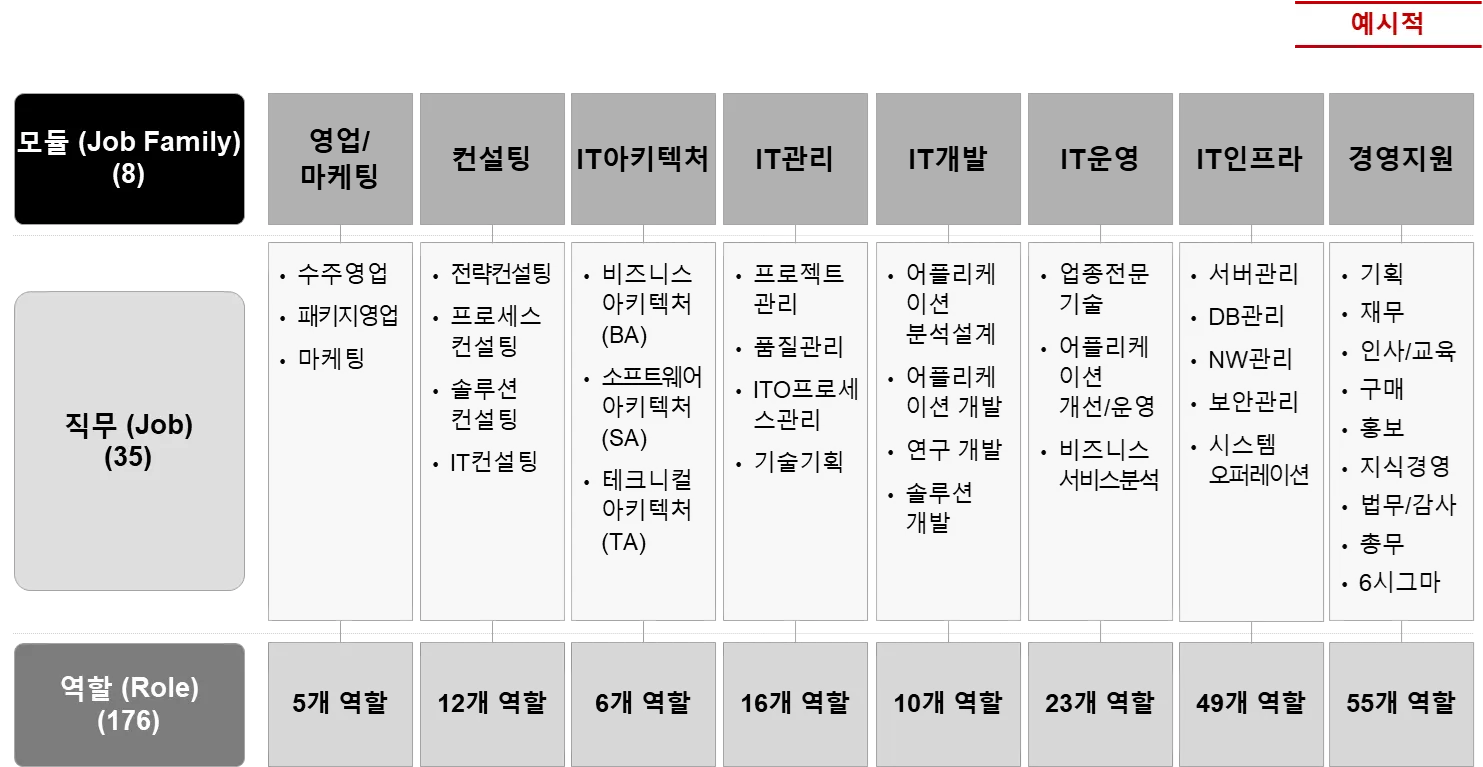 IT업체인 S사의 직무분류체계 예시 입니다.