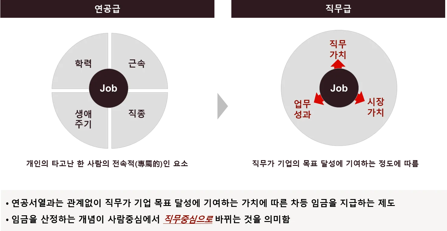 직무급은 각 직무가 기업의 목표 달성에 기여하는 상대적 가치를 측정하고, 그것에 따라 임금을 차등 지급하는 제도 입니다.