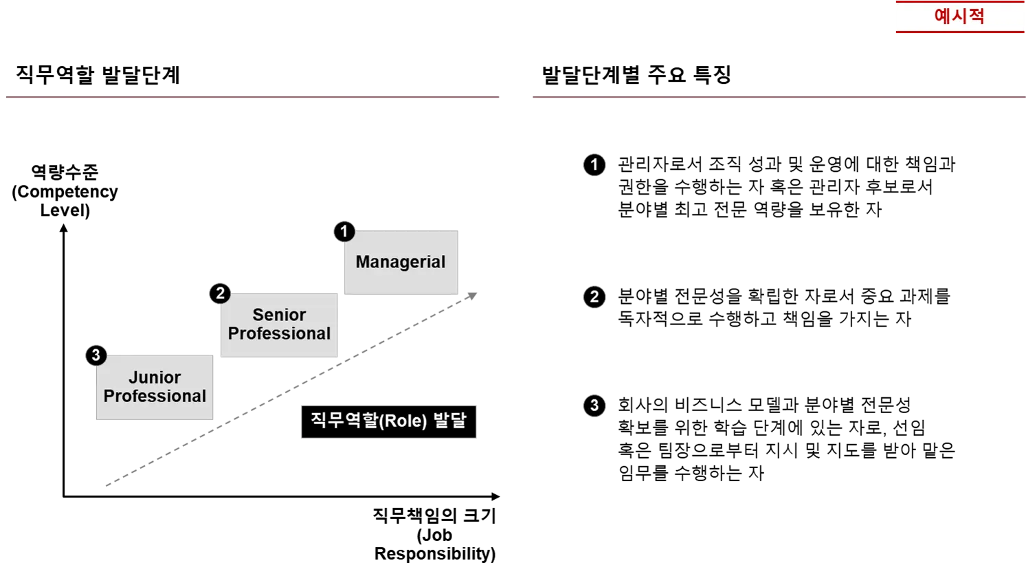 수직적 역할은 직무 책임의 크기와 역량 수준을 기준으로 직무역할 발달단계를 구분합니다.