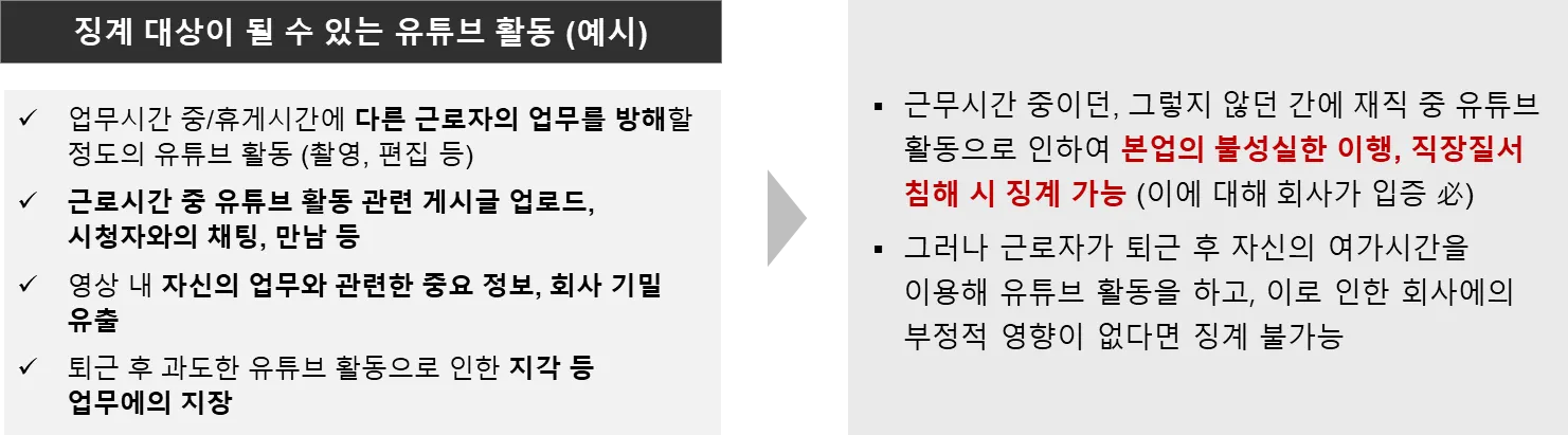 직장을 다니면서 하는 유튜브 활동 역시 겸업에 해당함.